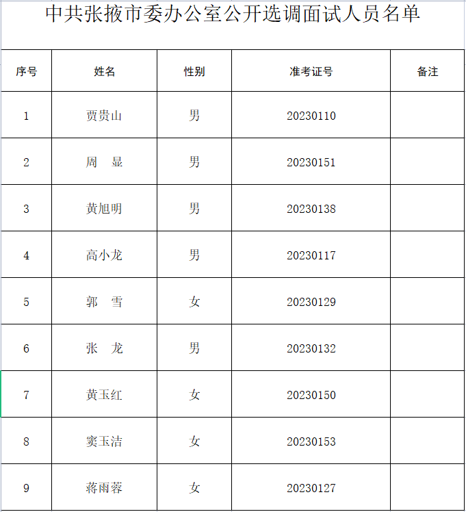 附件:中共張掖市委辦公室公開選調面試人員名單