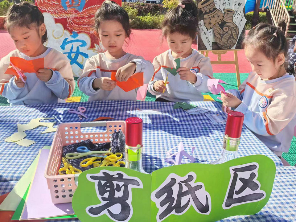 活動前,教師精心創設了不同省份和城市的環境,投放了游藝材料。家長和幼兒共同搜集資料,了解不同省份的特色美食、地域文化、風土人情,并通過集體教學和談話講述,進一步梳理孩子們的前期經驗準備。活動中,孩子和家長們跟隨游戲創設情境,暢游不同省份,品嘗特色小吃,酸甜可口的北京冰糖葫蘆、香甜可口的澳門蛋撻、廣東雙皮奶、有趣的粵劇頭飾制作……在別開生面的“暢游”祖國之旅中,孩子和家長們賞美景、品美食,共同領略了祖國之大和祖國之美。
